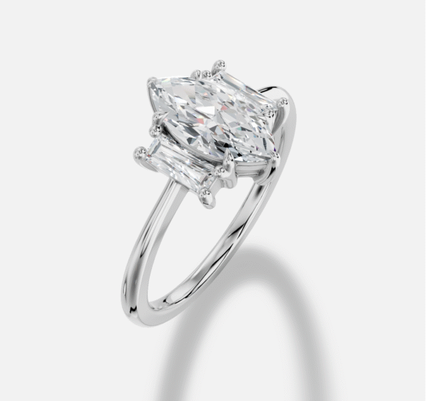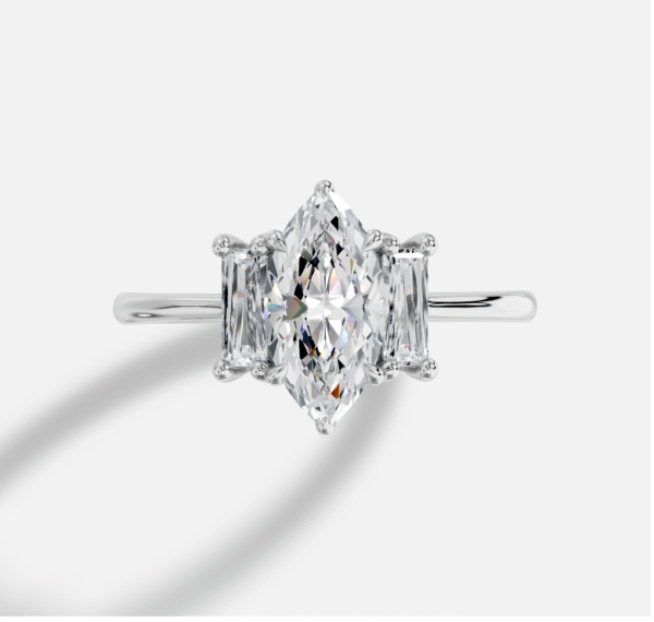 Marquise Three stones Diamond Ring in 18K White Gold