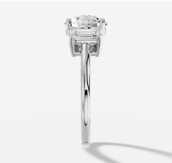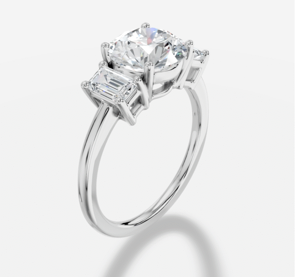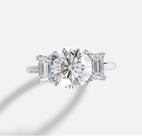 Round Three stone Diamond Ring in 18K White Gold